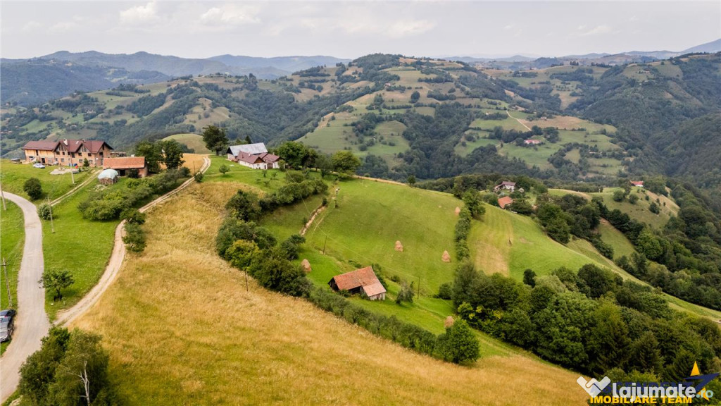 Pozitionat colinar la aproximativ 15-20 minute de drumul principal, urcam pe drumul forestier amenajat, pana ajungem pe o platforma verde, terenul fiind pozitionat la un unghi de inclinare de aproximativ 30 grade, cu o anexa constructie veche, avantajul fiind ca este conectata la curent electric si apa. Terenul are potential extraordinar, avand dispunere in zona de case, cu posibilitatea atat a unei constructii cat si pe segmentul investitional.