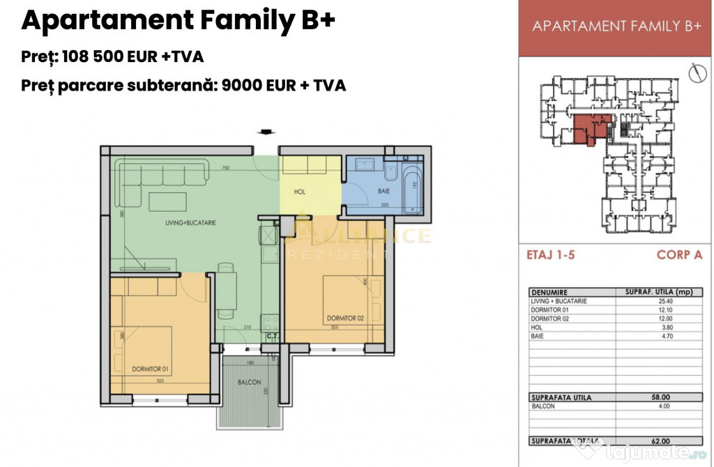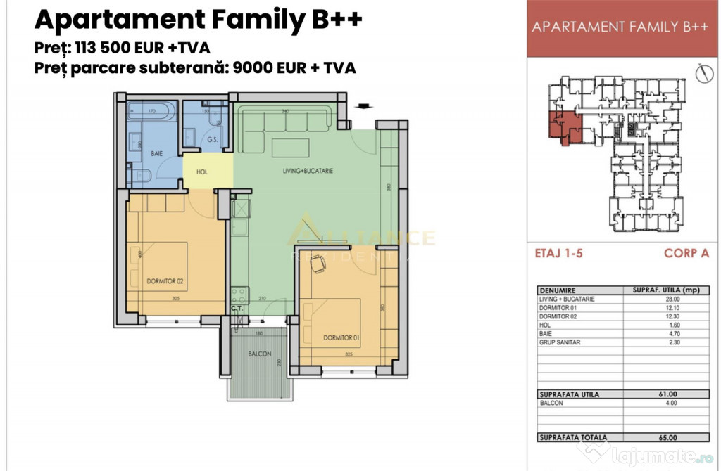 bull; Apartamente 3 camere ndash; 62 mp si 65 mp