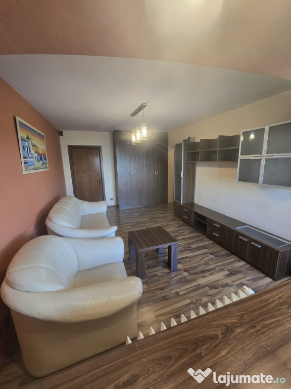 1 living luminos cu canapea extensibila(in curs de schimbare canapeaua extensibila cu alta NOUA), 2 fotolii, biblioteca cu spatii depozitare,sifonier dressing 4 usi, mini BAR, TV LCD;