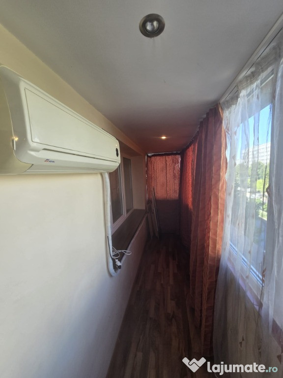 1 BALCON de inchis cu termopan, un spatiu de RELAXARE de 7mp,si montat pe balcon 1 aparat de AER CONDITIONAT ce poate raci ambele camera si dormitorul si sufrageria, balconul se intinde pe lungimea sufrageriei si a dormitorului, cu intrare din sufragerie;