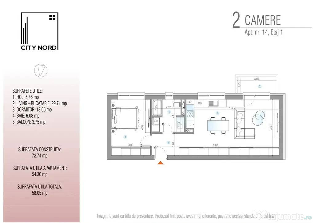 Alege un apartament care îți oferă mai mult decât spațiu: îți oferă valoare reală. Situat la etajul 1 și orientat SUD, acest apartament luminos face parte din proiectul Boutique CITY NORD – Eminescu 51, un ansamblu exclusiv cu doar 28 de unități. Finisaje de calitate, living generos, balcon, lift modern și o structură gândită pentru intimitate și confort. Poziționat aproape de transport public și utilități complete, este alegerea ideală pentru cei care caută siguranță în investiție și un stil de viață superior.Suprafață construită apartament: 72.7 mp