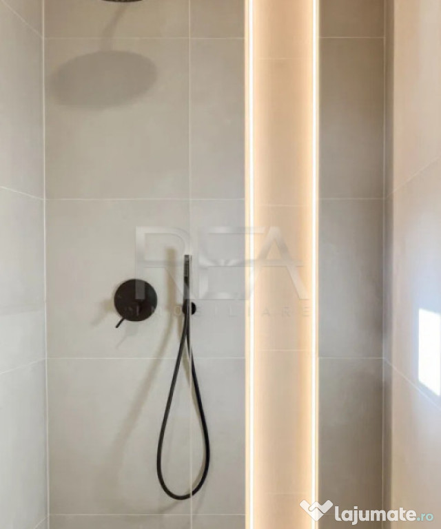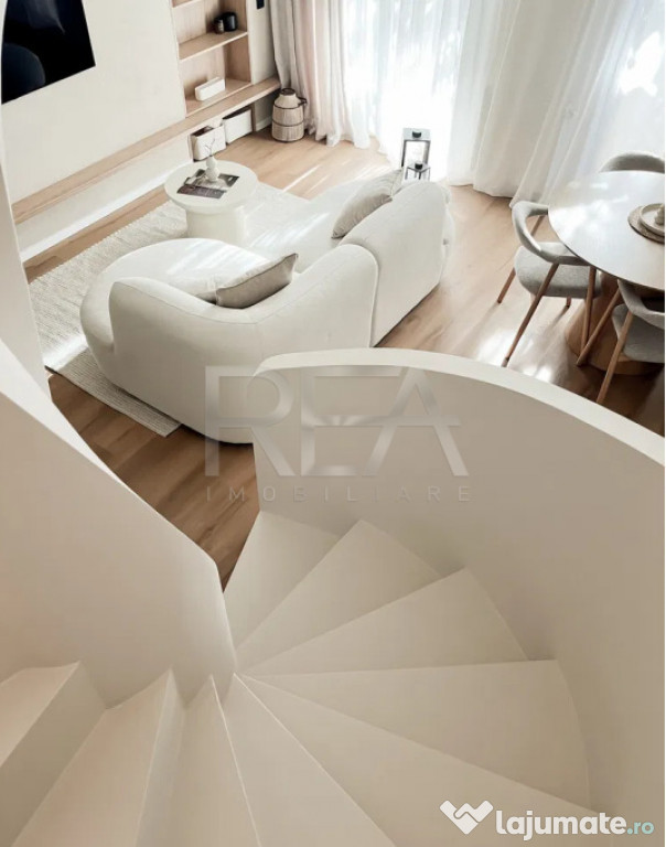 Zona de zi beneficiază de ferestre ample și acces direct către grădină, bucătăria este integrată și complet utilată, dormitorul matrimonial dispune de dressing și acces la balcon, iar cele două băi sunt finisate premium, una dintre ele cu walk-in shower.
