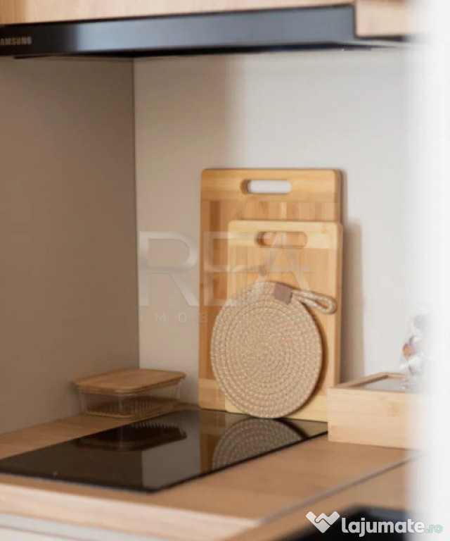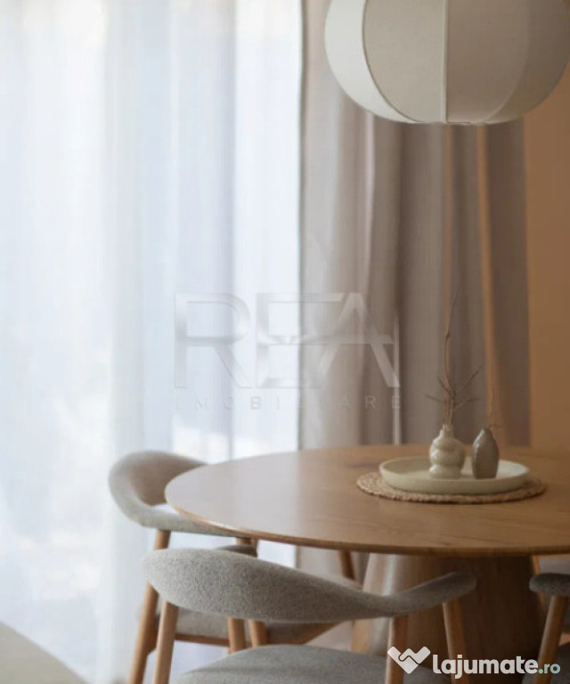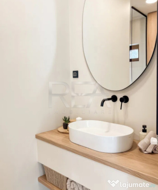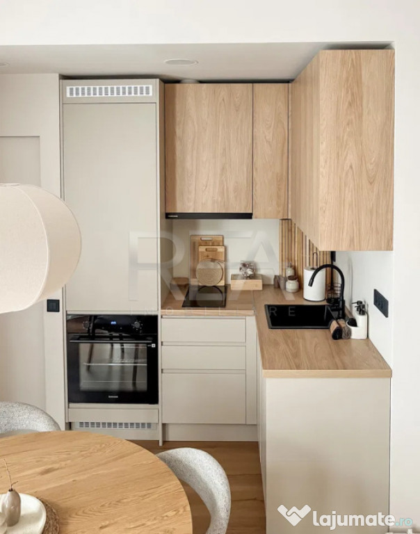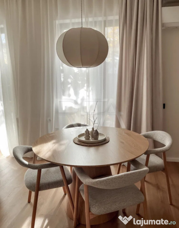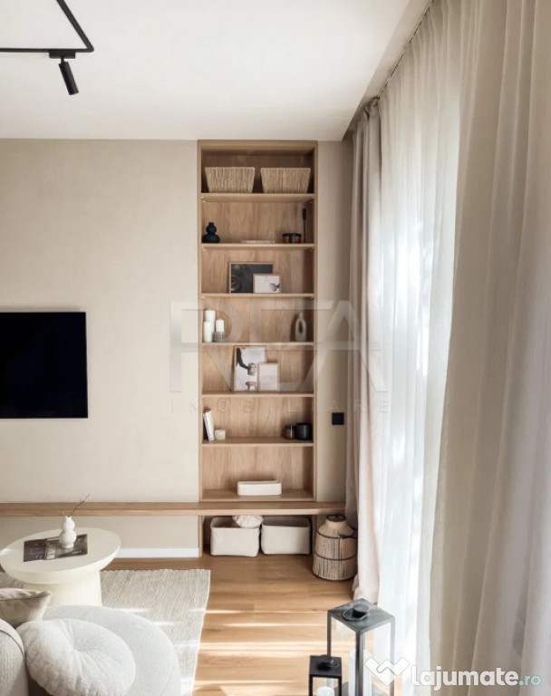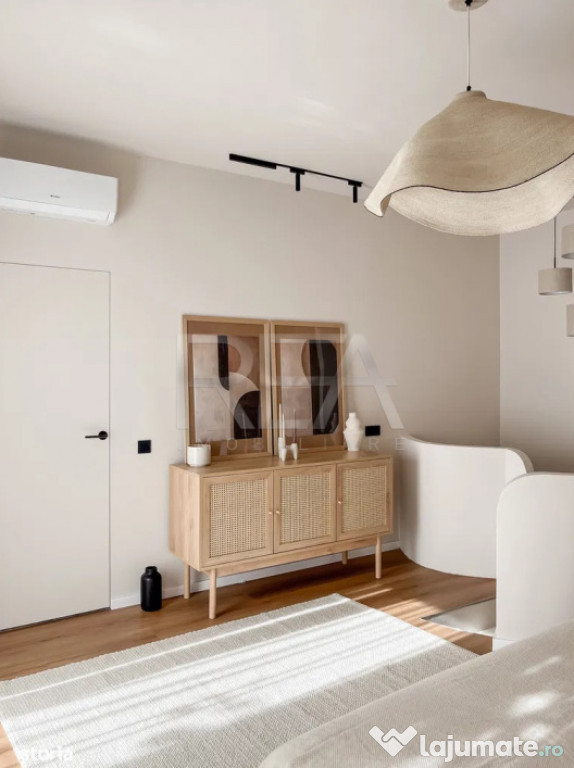 Apartamentul a fost complet renovat în 2025 și amenajat în stil Japandi, concept care îmbină minimalismul japonez cu funcționalitatea scandinavă, punând accent pe materiale naturale, linii curate și lumină.