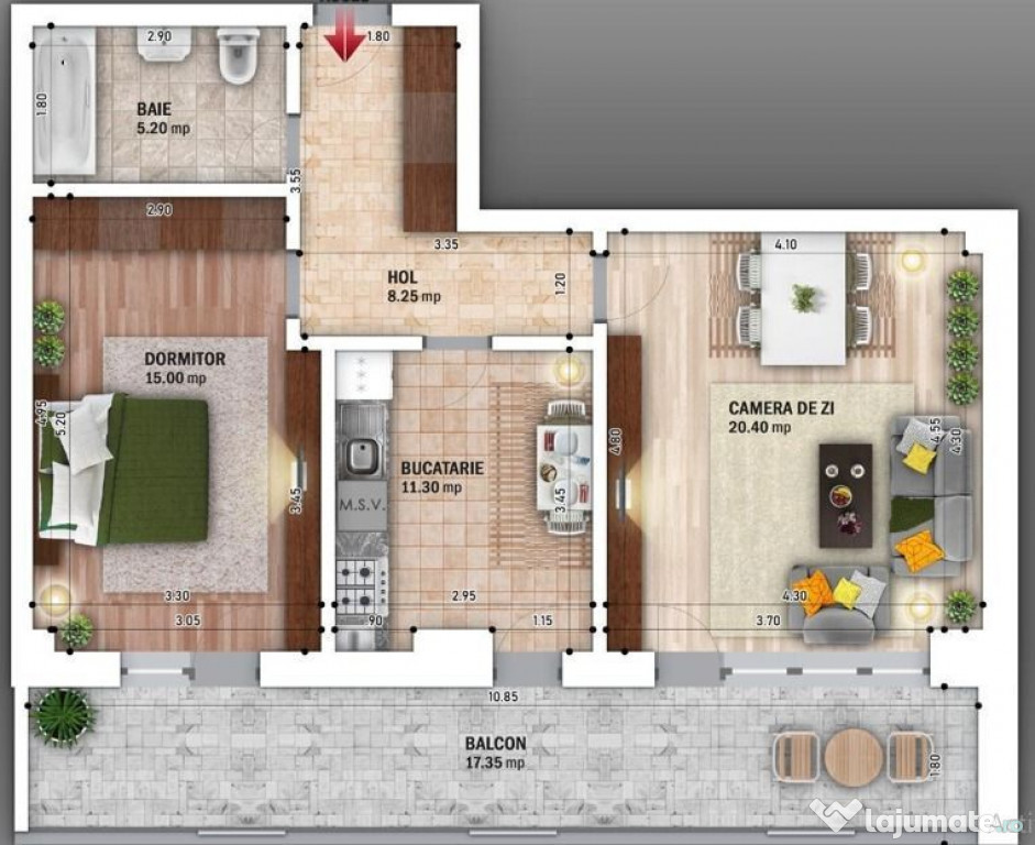 Balconul este mai mult decat generos si permite accesul atat din living cat si din bucatatrie, dar si din dormitor.