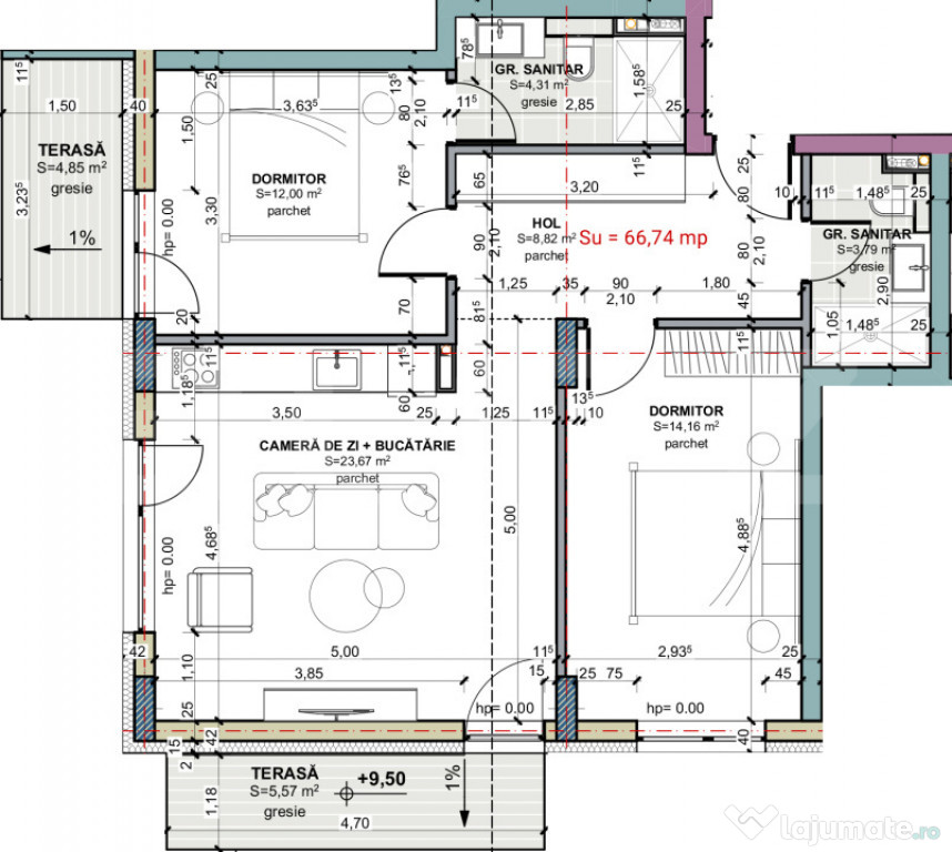 • Predare la stadiul de semifinisat – 2 mâini de glet, șapă, instalații trase pe poziții