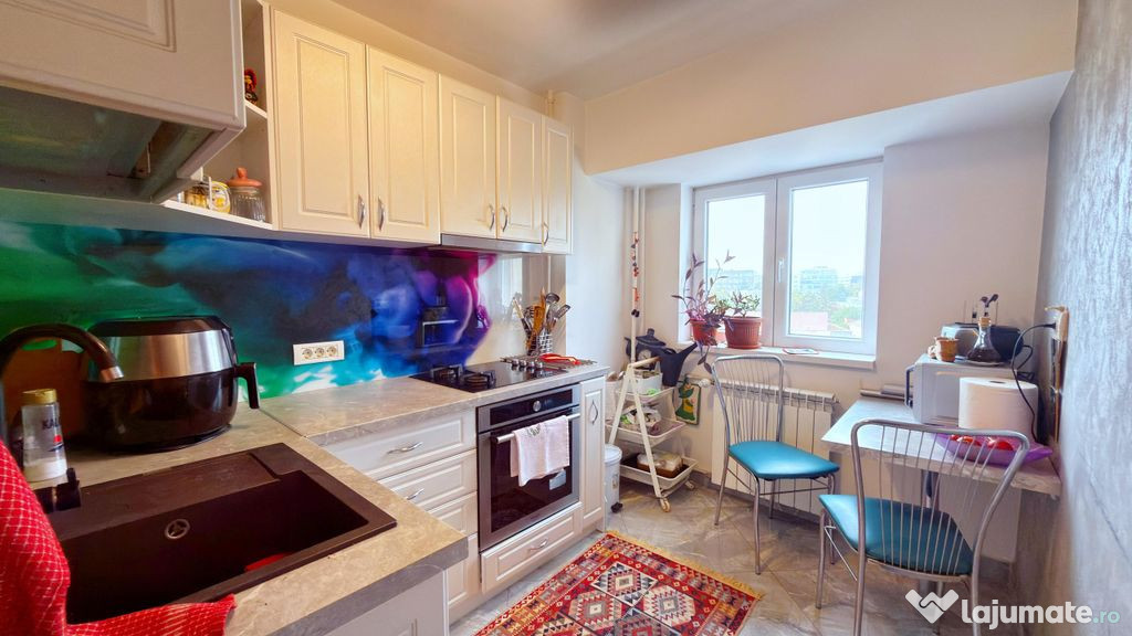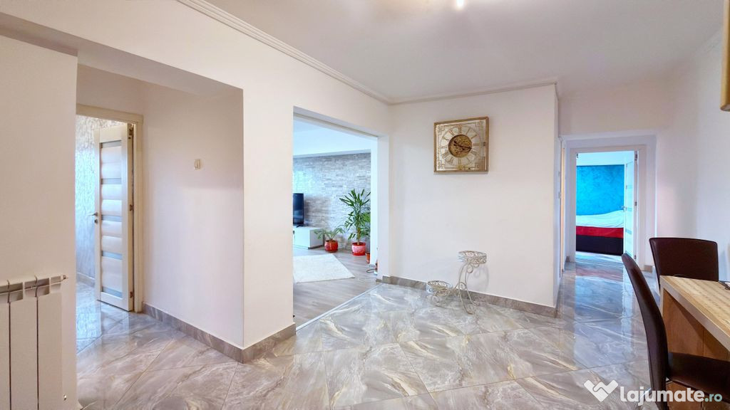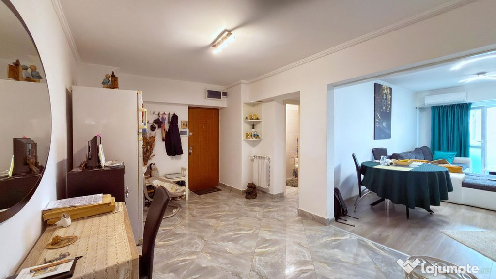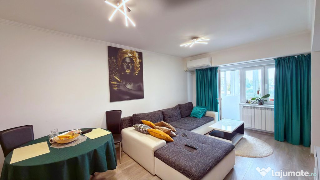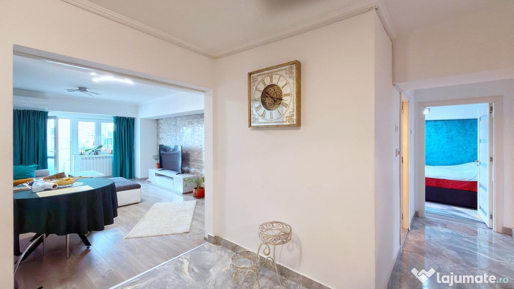 Acest apartament de 3 camere situat la etajul 3 al unui bloc cu lift Schindler te va cuceri din prima clipă: complet renovat, in 2020, instalații electrice și sanitare noi, finisaje premium, living generos, două dormitoare spațioase, baie cu geam și grup sanitar separat. Bucătărie închisă, hol larg la intrare – totul gândit pentru confort și rafinament.