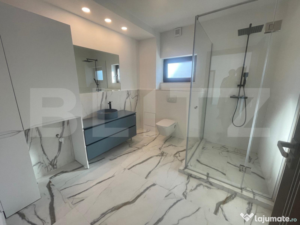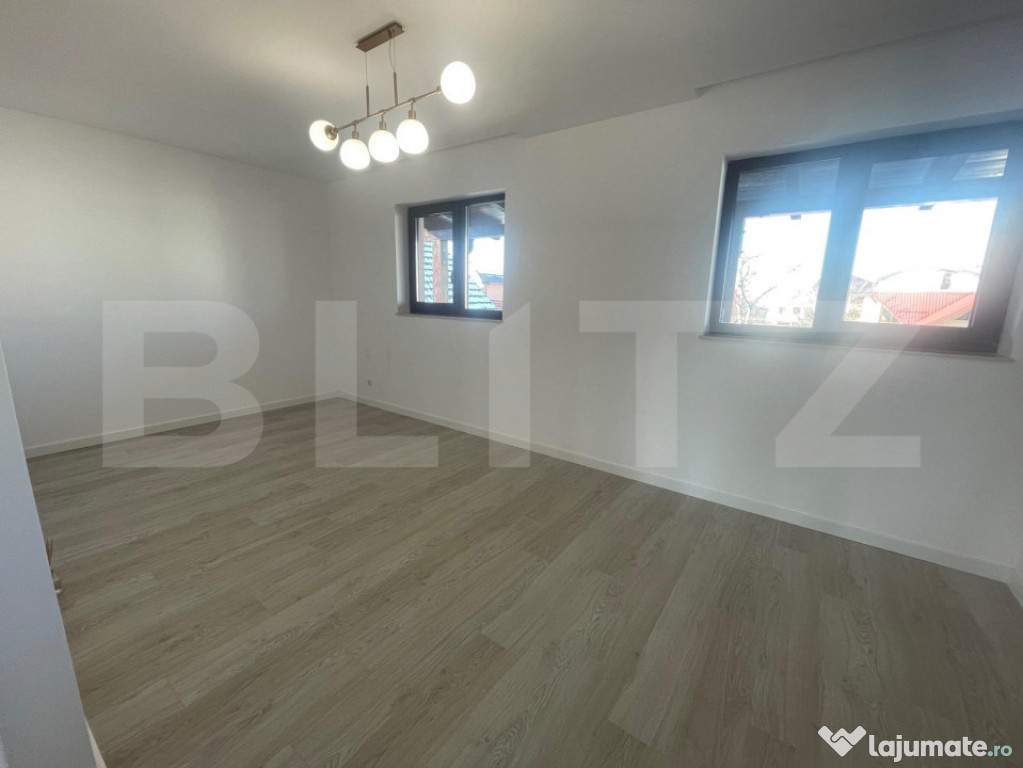 Blitz vă propune spre închiriere etajul 2 al unei case moderne, situată într-o zonă excelentă din cartierul Gheorgheni, în apropierea Interservisan – la aproximativ 7 minute de Iulius Mall.Proprietatea face parte dintr-o construcție nouă (2022), cu regim de înălțime P+2E, iar spre închiriere este disponibil un singur etaj, cu o suprafață generoasă de 150 mp, pretabil atât pentru spațiu de birouri, cât și pentru locuire de tip premium / apartament de protocol.