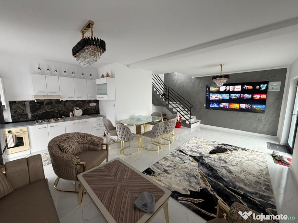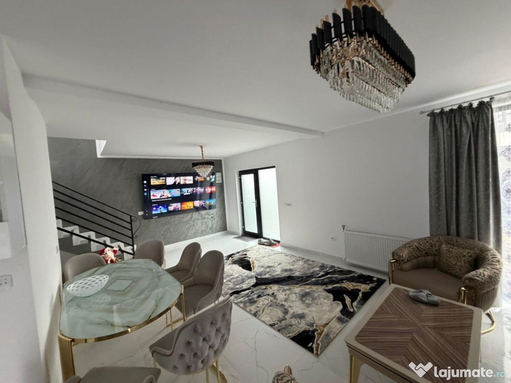 Casa se vinde complet mobilată și utilată, gata pentru mutare imediată, fără a necesita investiții suplimentare. Designul interior modern creează o atmosferă caldă și primitoare.