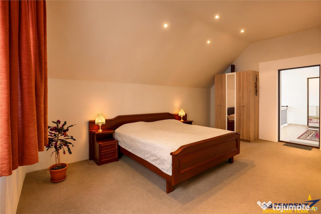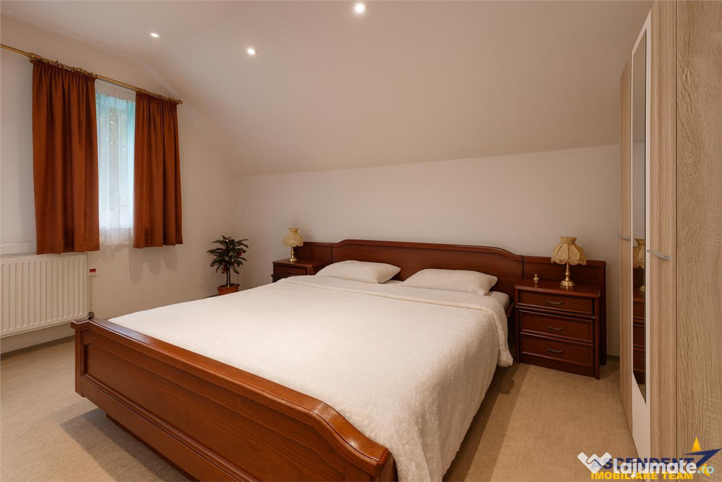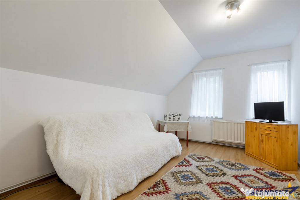 Mansarda este compartimentata in trei dormitoare si o baie, dintre care unul dintre dormitoare beneficiaza de terasa proprie, cu o panorama spectaculoasa asupra cadrului natural.