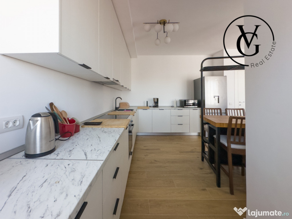 Locuința propusă pentru inchiriere sau vanzare are 109 mp utili (137 mp total), două terase însumând 30 mp, 3 dormitoare, un living spațios cu bucătărie open-space și loc de parcare subteran. Standardul nZEB (nearly Zero Energy Building) garantează costuri reduse de întreținere și un impact minim asupra mediului.
