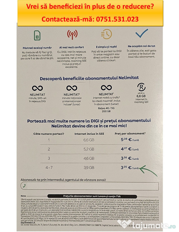 Ma poti contacta pentru a beneficia in plus de o reducere de 50% timp de 4/6/12 luni in functie de zona in care te afli.