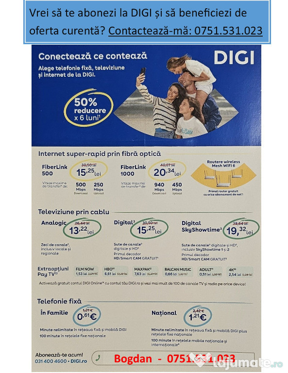Anuntul Abonament DIGI Mobil, TV, Internet cu promotie este adaugat de pe LaJumate.ro.
