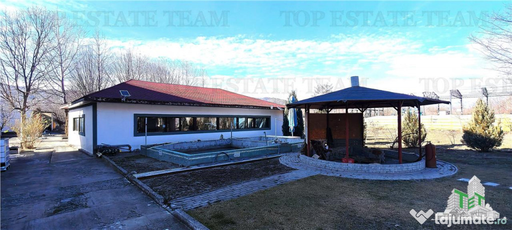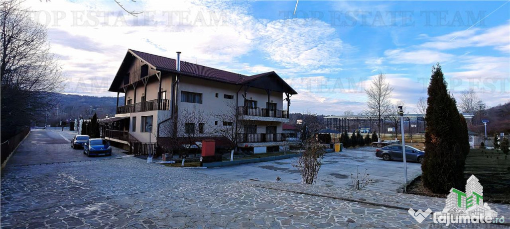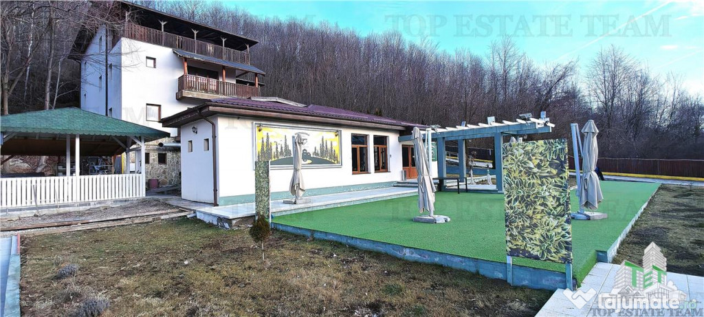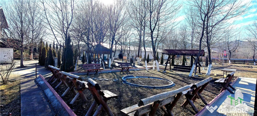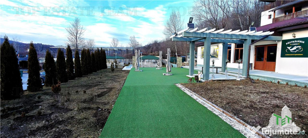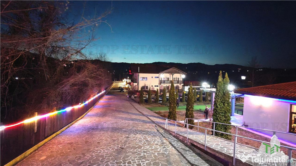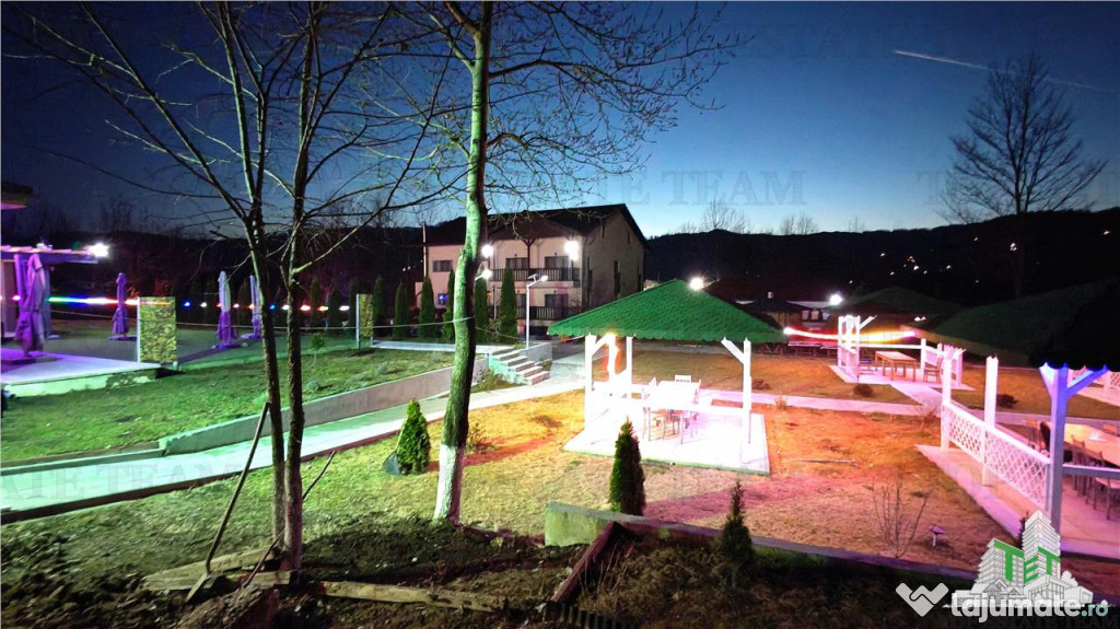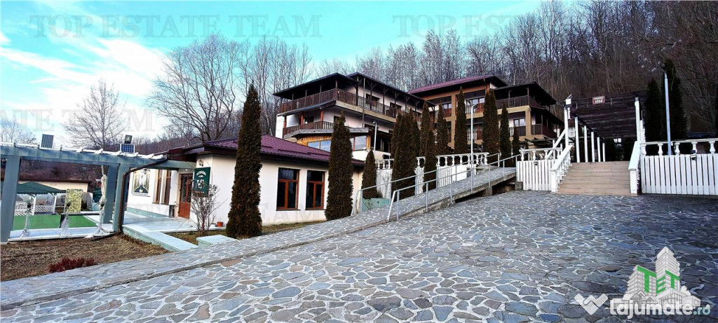 Proprietatea este compusa din 2 pensiuni, un salon de evenimente, capacitate de peste 200 persoane, centru SPA, restaurant avand o capacitate de 170 persoane, pastravarie, terase amenajate , zona de gratar, spatiu pentru foc de tabara, parcare privata avand capacitate de 40 masini, 25 camere si 2 apartamente , avand toate autorizatiile si avizele necesare .