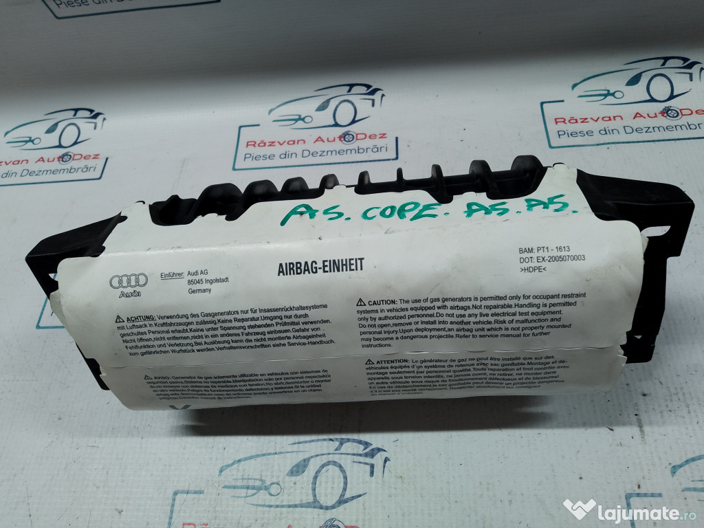 Airbag pasager Audi A5 Coupe 2008. Cod(uri): 8T0880204D. Piesele comercializate sunt originale, provenite din dezmembrari. Dispunem de o gama larga de piese multimarca. Piesele sunt verificate inainte de a fi puse spre vanzare. In caz de neconformitate piesa se poate returna. Va rugam sa verificati disponibilitatea pieselor telefonic. Trimitem in tara prin curier.Marcă: Audi