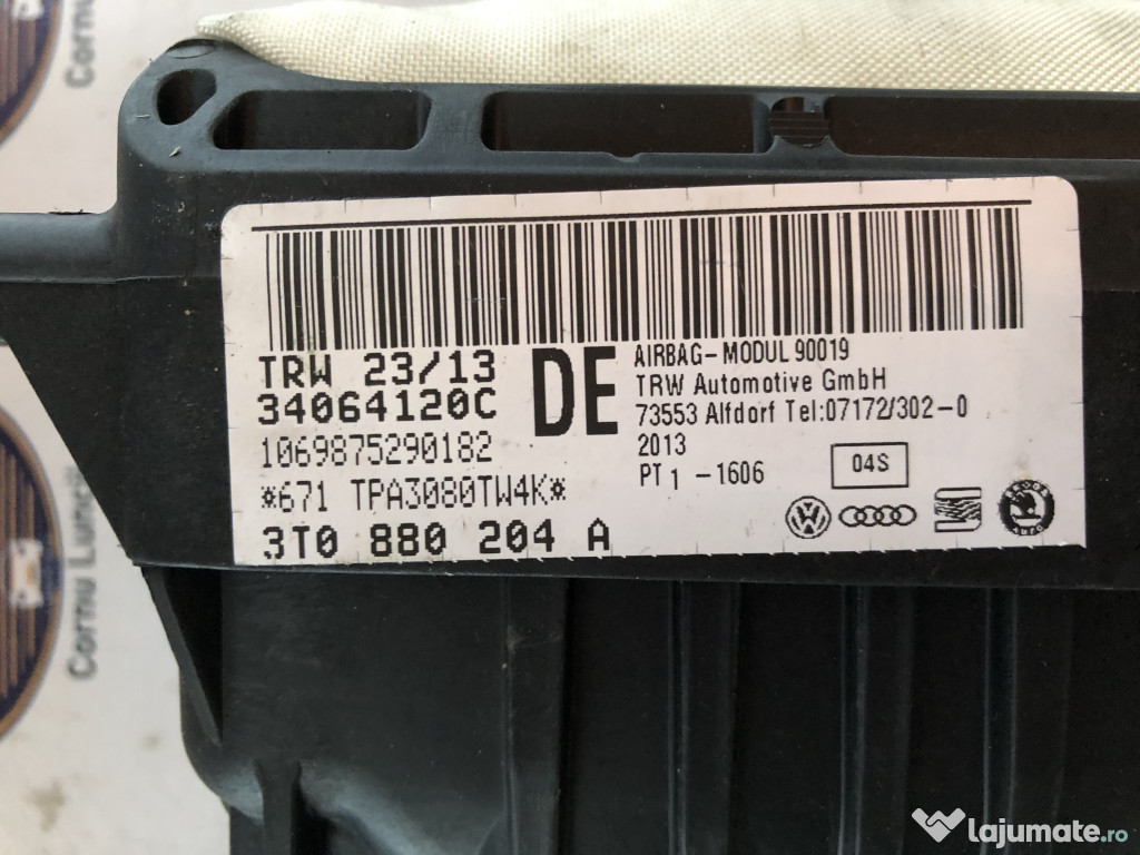 Airbag pasager Skoda Superb 2 2013. Cod(uri): 3T0880204A. Piesele comercializate sunt originale, provenite din dezmembrari. Dispunem de o gama larga de piese multimarca. Piesele sunt verificate inainte de a fi puse spre vanzare. In caz de neconformitate piesa se poate returna. Va rugam sa verificati disponibilitatea pieselor telefonic. Trimitem in tara prin curier.Marcă: Škoda