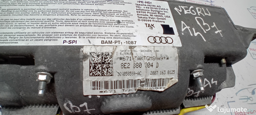 Airbag pasager Volkswagen Passat B6 2006. Cod(uri): 8E2880204D. Piesele comercializate sunt originale, provenite din dezmembrari. Dispunem de o gama larga de piese multimarca. Piesele sunt verificate inainte de a fi puse spre vanzare. In caz de neconformitate piesa se poate returna. Va rugam sa verificati disponibilitatea pieselor telefonic. Trimitem in tara prin curier.Marcă: Volkswagen