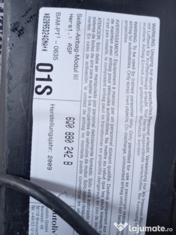 Anuntul Airbag scaun dreapta fata Skoda Roomster 2009 este adaugat de pe LaJumate.ro.
