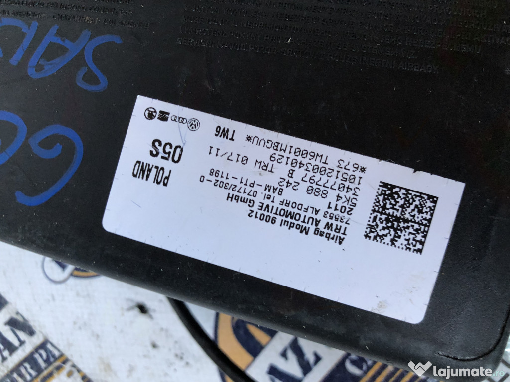 Airbag scaun dreapta fata Volkswagen Golf 6 2011. Cod(uri): 5K4880242. Piesele comercializate sunt originale, provenite din dezmembrari. Dispunem de o gama larga de piese multimarca. Piesele sunt verificate inainte de a fi puse spre vanzare. In caz de neconformitate piesa se poate returna. Va rugam sa verificati disponibilitatea pieselor telefonic. Trimitem in tara prin curier.Marcă: Volkswagen