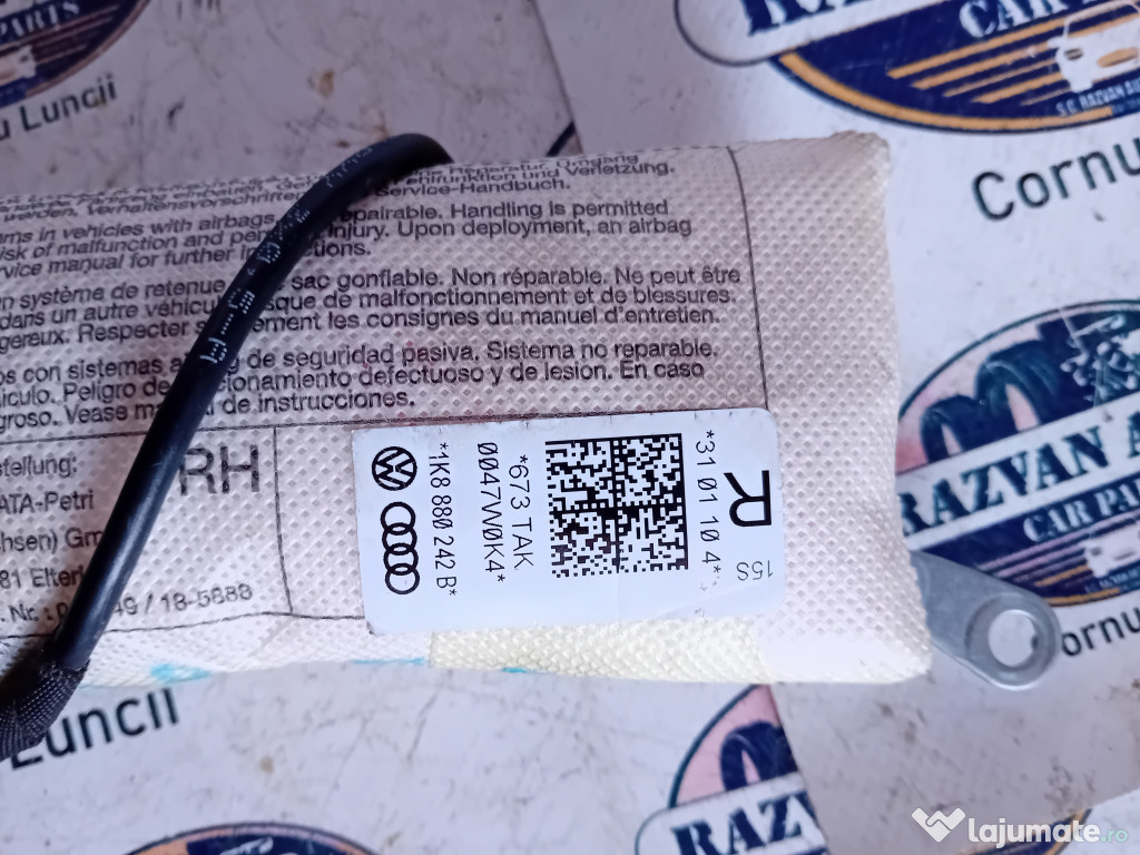 Airbag scaun dreapta fata Volkswagen Passat CC. Cod(uri): 1K8880242B. Piesele comercializate sunt originale, provenite din dezmembrari. Dispunem de o gama larga de piese multimarca. Piesele sunt verificate inainte de a fi puse spre vanzare. In caz de neconformitate piesa se poate returna. Va rugam sa verificati disponibilitatea pieselor telefonic. Trimitem in tara prin curier.Marcă: Volkswagen