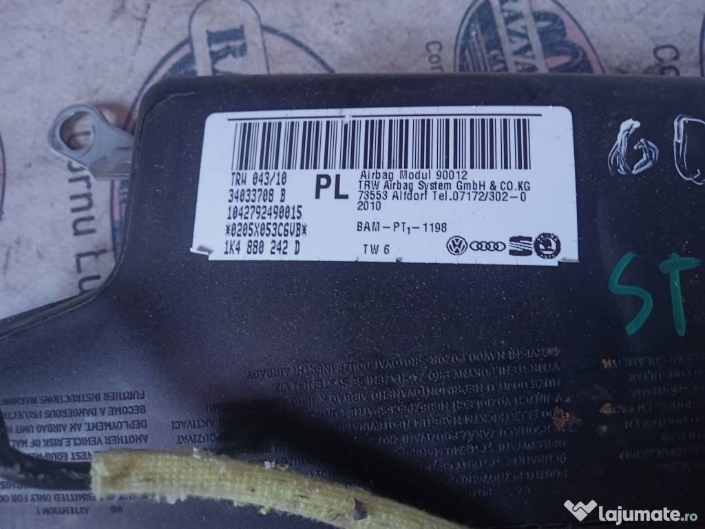 Anuntul Airbag scaun stanga fata Volkswagen Golf 5 Plus 2010 este adaugat de pe LaJumate.ro.