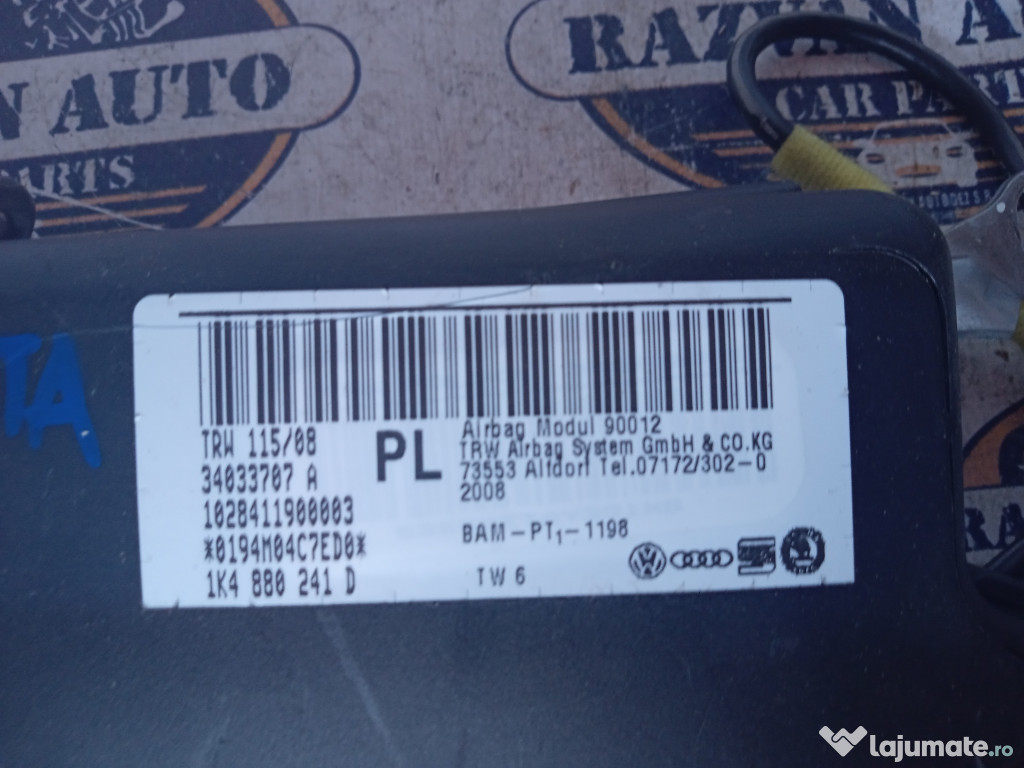 Airbag volan Volkswagen Touran 2008. Cod(uri): 5N0880201. Piesele comercializate sunt originale, prov ...