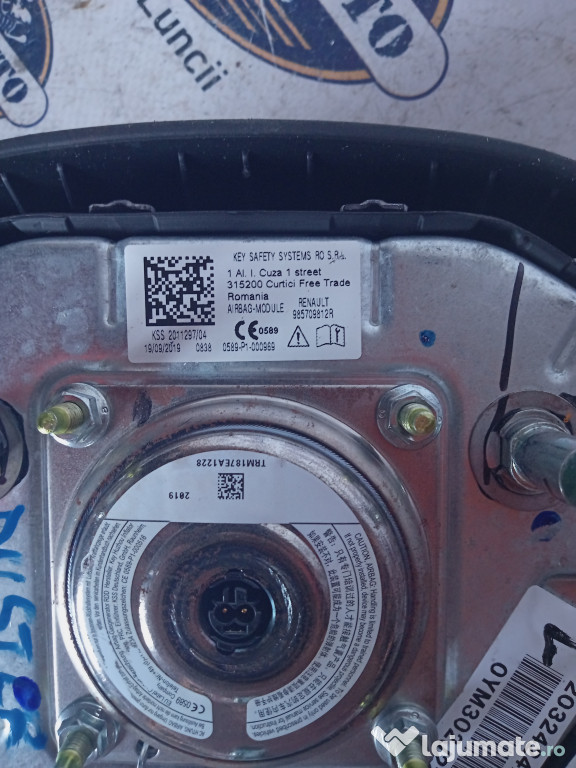 Airbag volan Dacia Duster 2019. Cod(uri): 985709812R. Piesele comercializate sunt originale, provenite din dezmembrari. Dispunem de o gama larga de piese multimarca. Piesele sunt verificate inainte de a fi puse spre vanzare. In caz de neconformitate piesa se poate returna. Va rugam sa verificati disponibilitatea pieselor telefonic. Trimitem in tara prin curier.Marcă: Dacia