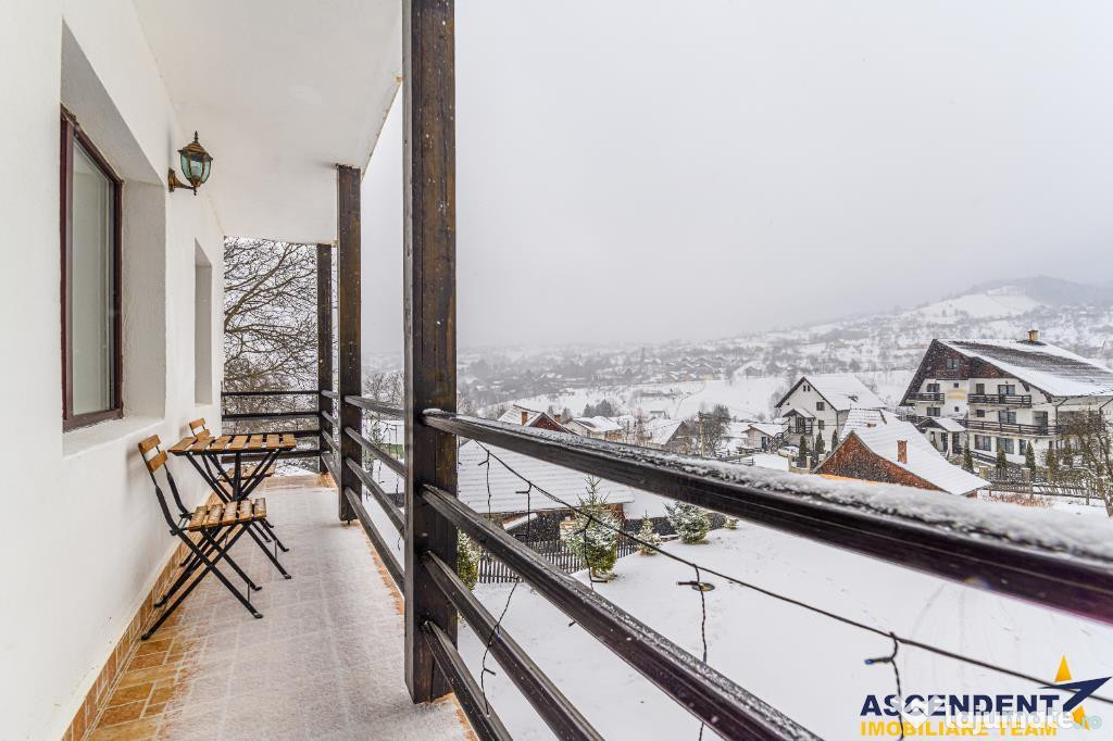 propune spre vanzare o pensiune turistica, amplasata in Bran - Poarta, la aproximativ un kilomentru de partia de ski Zanoaga si doi kilomentri de castelul Bran, intr-o zona linistita, in natura, cu incantatoare priveliste spre curcubeul muntos.