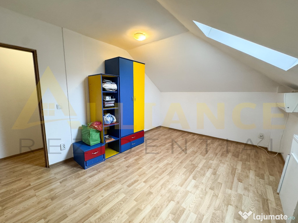 • Mansarda: 2 dormitoare + baie + acces în pod (aprox. 12 mp), accesibil cu scară telescopică