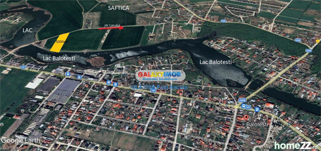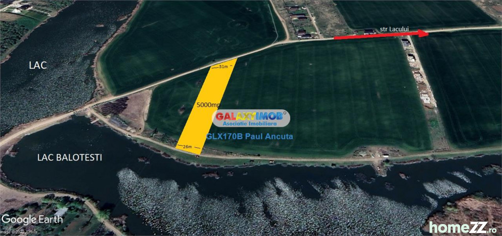5000 MP LAC BALOTESTI - STR LACULUI.De vanzare teren intravilan in suprafata de 5000 mp amplasat in Balotesti cu acces de 30 m la str Lacului unde sunt utilitati:curent si gaz,langa vile noi construite cu multa liniste.Teren cu acces rapid la soseaua Unirii si la toate centrele Comerciale din zona.Prin PUG aprobat de primarie pe acest teren se pot construi case cu P 1 M cu POT 30% si CUT 1%. Pret 40 e/mp Tel ascunsInformatii eficienta energetica: