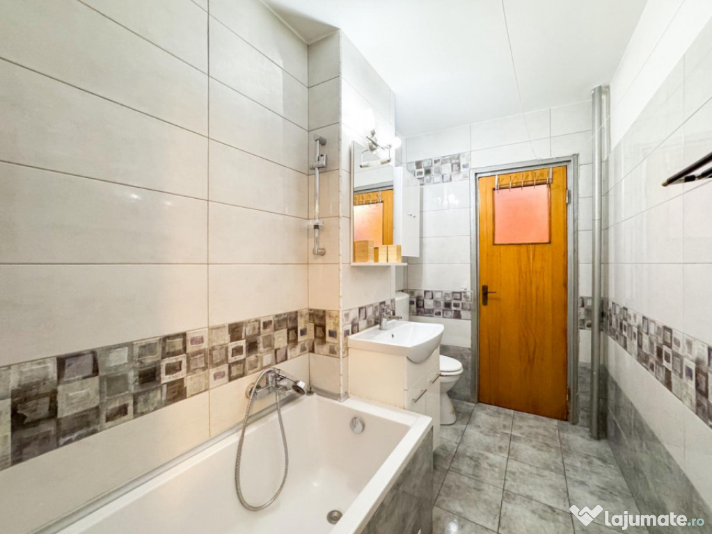 Tipul de apartament: 2 camere circulat prin baie(pentru cei mai putin familiarizati, are usa la baie atat din holul de la intrare, cat si din dormitor. Cea de la dormitor poate fi anulata si inchis accesul, evident.