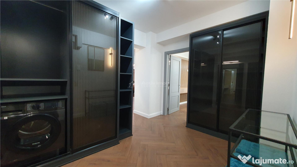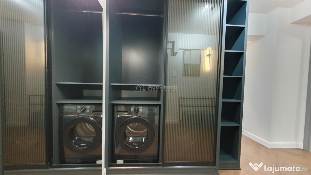 - suprafata utila de 90 mp, excelent compartimentata, cu hol generos, amenajat cu dulapuri moderne si spatiu dedicat pentru masina de splat si uscator de rufe