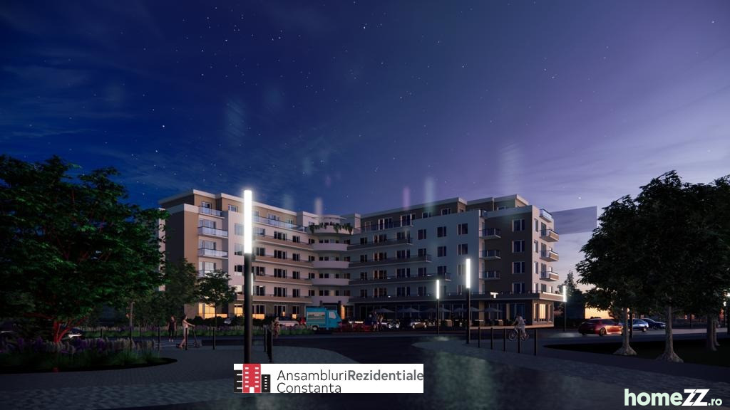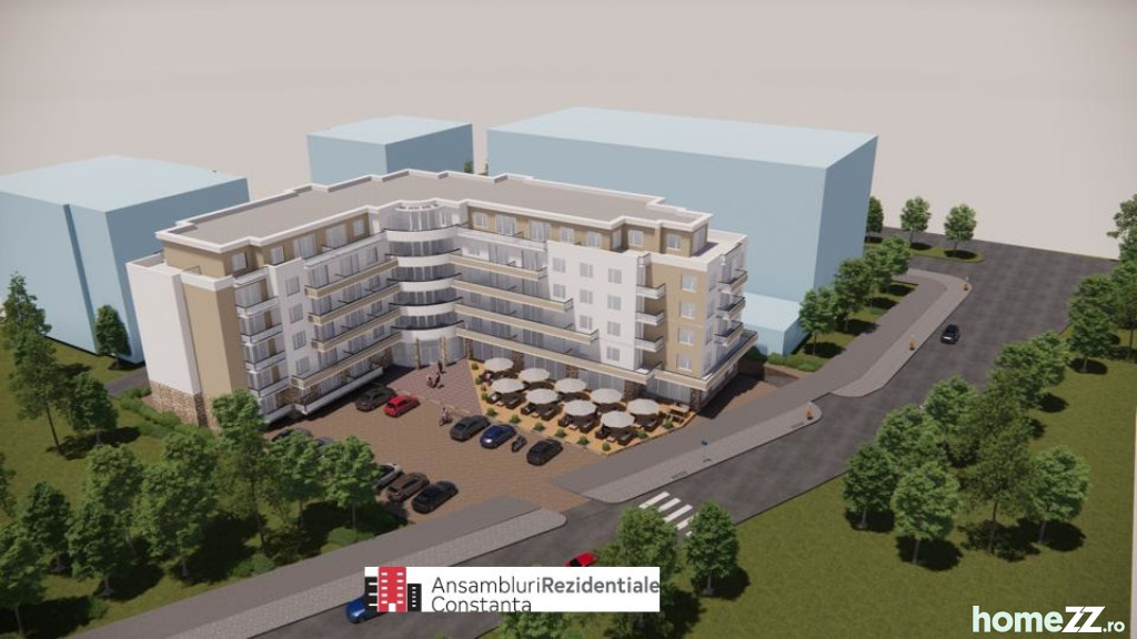 Ansamblul dispune de studiouri, apartamente cu 2 si 3 camere cu terase generoase si vedere la mare.
