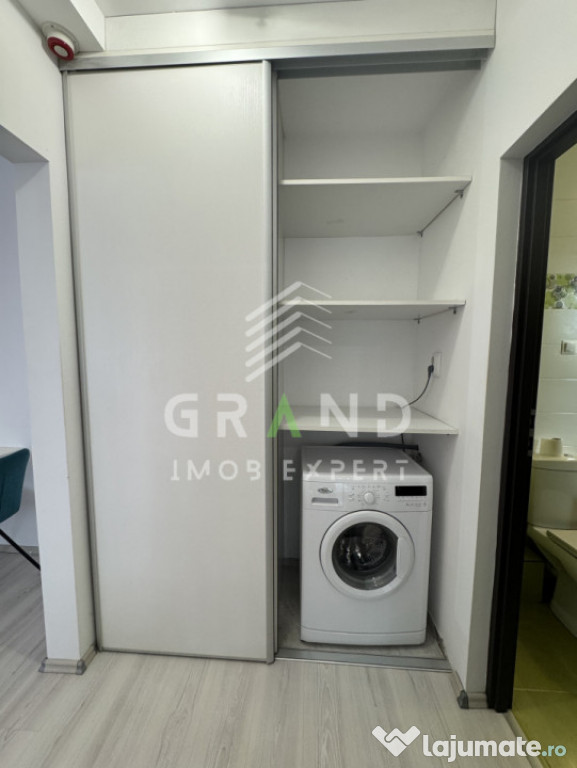 • Living open-space + bucătărie complet utilată (frigider, cuptor, aragaz, hotă, mașină de spălat haine etc.)