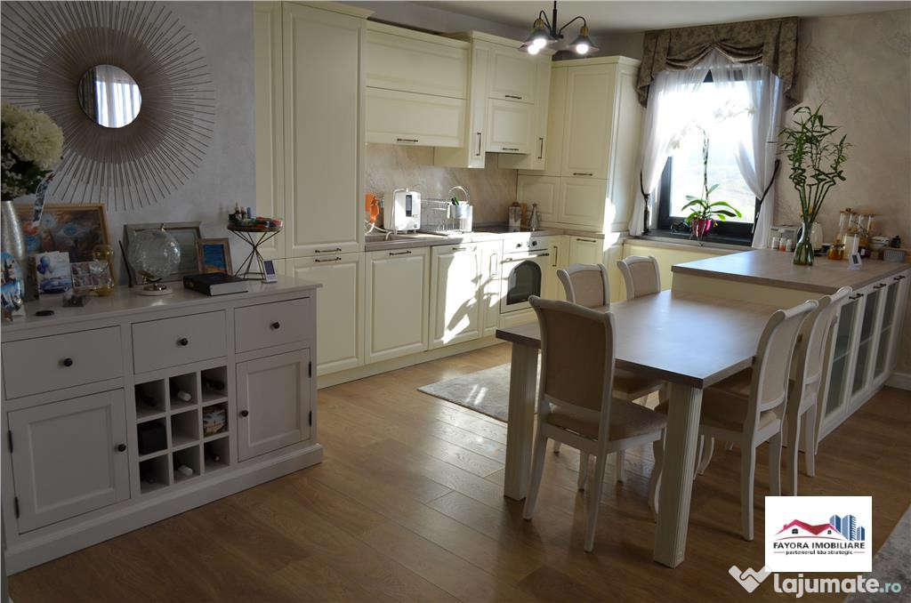 Apartamentul este dotat cu: aer conditionat, centrala termica incorporata in mobilier, geamuri termopan, parchet, gresie, faianta si este utilat cu: frigider, plita si cuptor incorporat, hota, masina de spalat vase incorporata, etc.