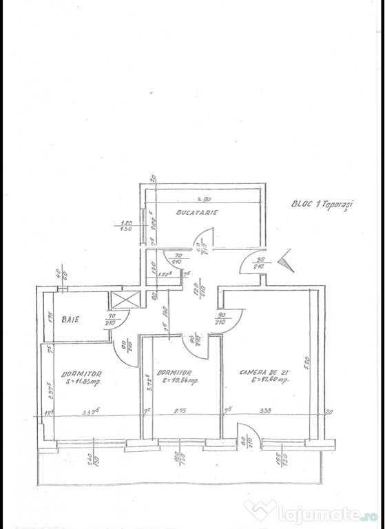 Ap. 3 camere, decomandat et 2/10, bloc anvelopat
