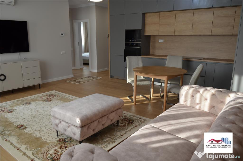 Ap. Lux Mobilat si Utilat cu Parcare Subterana de Inchiriat TudorFayora Imobiliare va ofera spre inchiriere un apartament nou cu trei camere si doua bai, total decomandat, avand suprafata de aproximativ 80 mp utili.