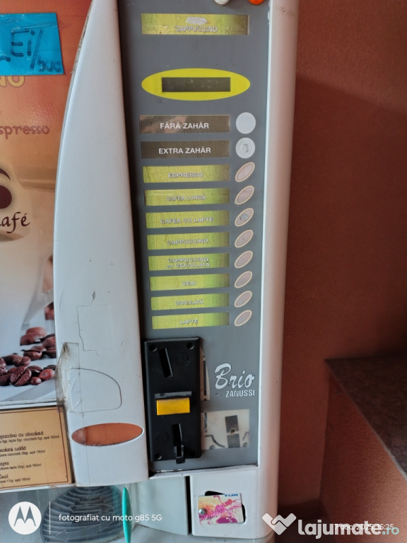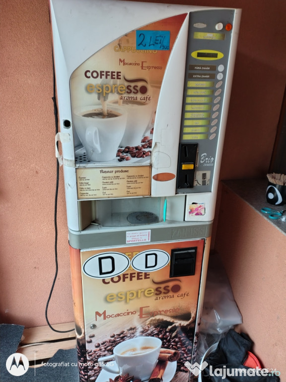 Vând aparat de cafea Zanussi brio cafea boabe in stare buna de funcționare cu monede (0.10/0.50) și bancnote 1 leu /5 lei la 1350 lei predare din Zalău preț ușor negociabil. Nu merge funcția de bețișoare cel puțin eu nu am folosit.Anuntul Aparat de cafea Zanussi brio boabe este adaugat de pe LaJumate.ro.