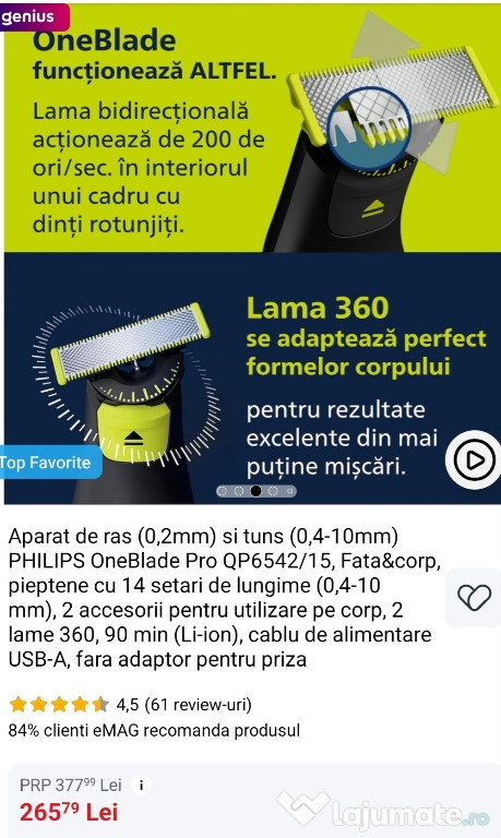 Gillette One Blade 360 nou..ptr ras,tuns,corp,barba...Anuntul Aparat ras,tuns,corp Gillette One blade360 nou este adaugat de pe LaJumate.ro.