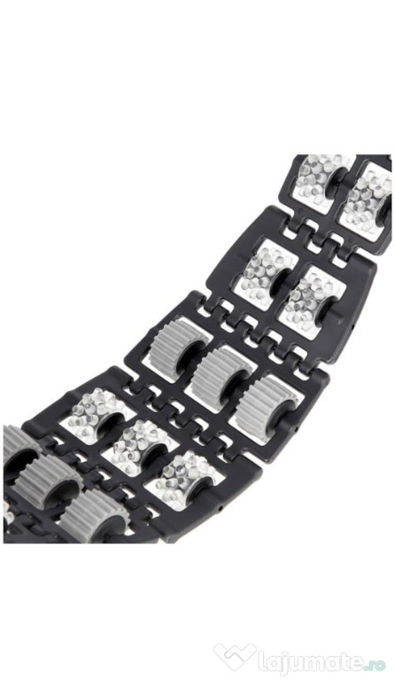 In set sunt incluse 3 curele de masaj diferite concepute pentru anumite parti ale corpului. Centura unica plata este utilizata pentru masarea coapselor, feselor si picioarelor, in timp ce centura dubla plana vizeaza bratele, spatele si pieptul. Centura cu role anticelulitice reduce aspectul celulitei din abdomen, talie, solduri si coapse.
