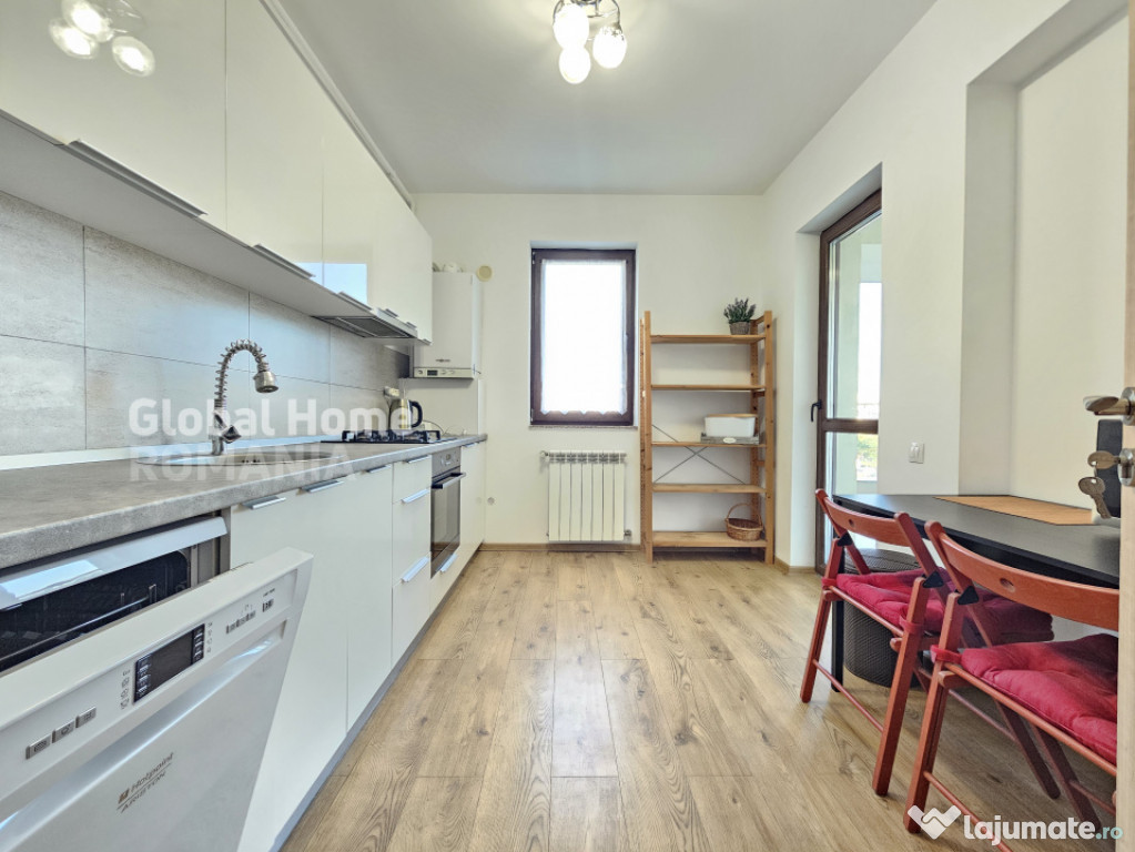 - Bucatarie complet echipata: frigider, plita pe gaz, cuptor electric, hota, masina de spalat vase