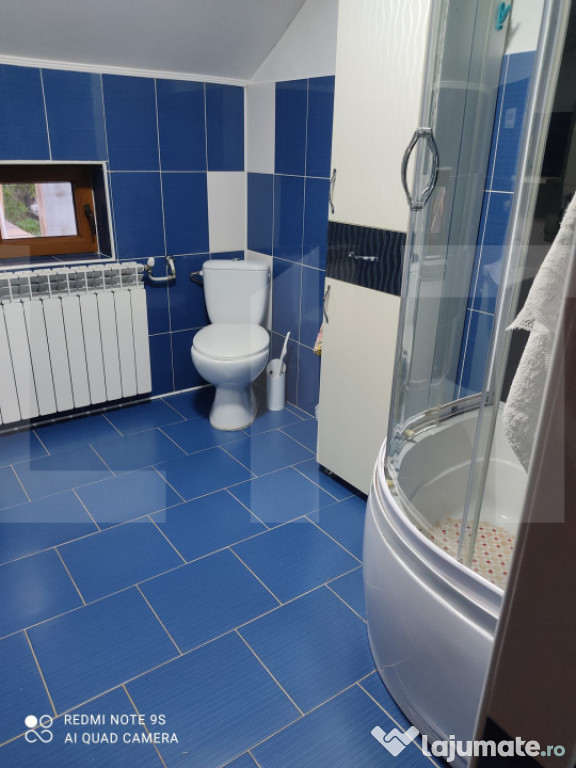 Locuința este prevăzută cu tâmplărie PVC cu 3 camere, finisaje elegante tip stucco și geamuri la ambele băi pentru aerisire naturală. Se vinde complet mobilată și utilată, fiind echipată cu plită și cuptor electric, hotă, dressing și panou solar pentru apă caldă.