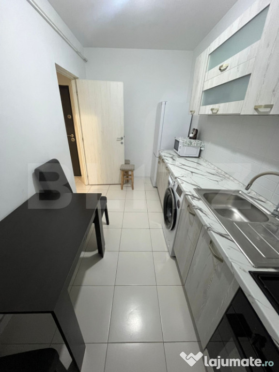 Blitz România vă propune spre vânzare un apartament de 1 cameră, cochet și bine compartimentat, situat în complexul rezidențial ASTORIA Residence, din Lunca Cetățuii. Proprietatea se află la etajul 1 al unui bloc nou, cu acces securizat și spații comune moderne.Caracteristici generale:
