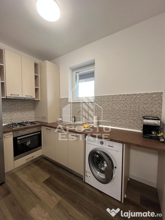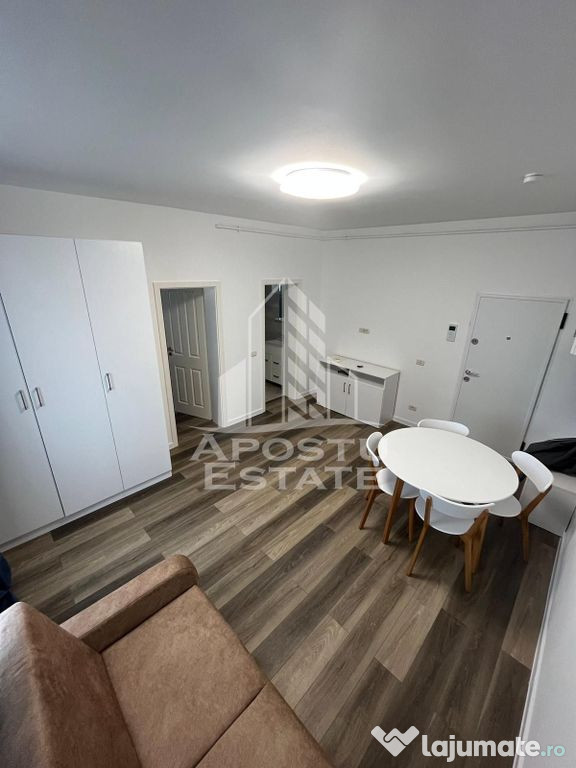 APOSTU ESTATE are placerea de a va propune spre inchiriere un apartament, aflat la prima inchiriere, situat in Giroc, intr-o zona linistita si usor accesibila.Locuinta este amplasata la parterul unui imobil nou si se remarca prin finisaje moderne, mobilier nou si dotari complete, fiind ideala pentru o persoana.