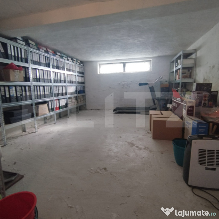 Curtea are acces auto pentru două mașini, iar anexa tip garaj din spate, împărțită astăzi în trei zone, deschide multiple posibilități: spațiu de lucru, atelier, mic birou sau chiar revenirea la o destinație comercială (SAD).