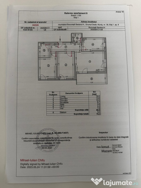 Suprafata imobil: Utila 66.9, utila totala 76.3.