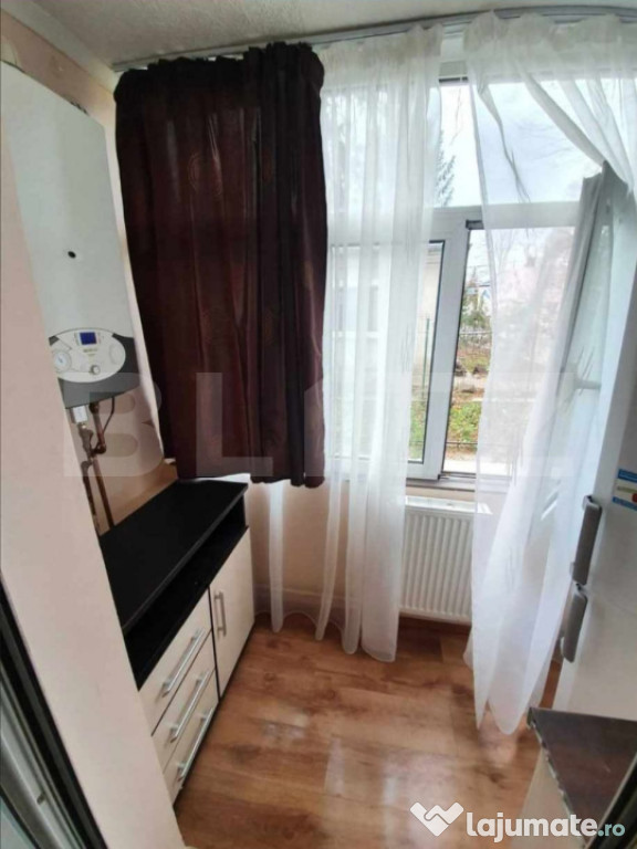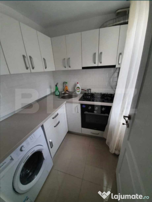 Apartamentul are o suprafață utilă de 40 mp, este mobilat și utilat complet, dispunând de centrală termică proprie, mașină de spălat, frigider și toate electrocasnicele necesare pentru o mutare imediată.