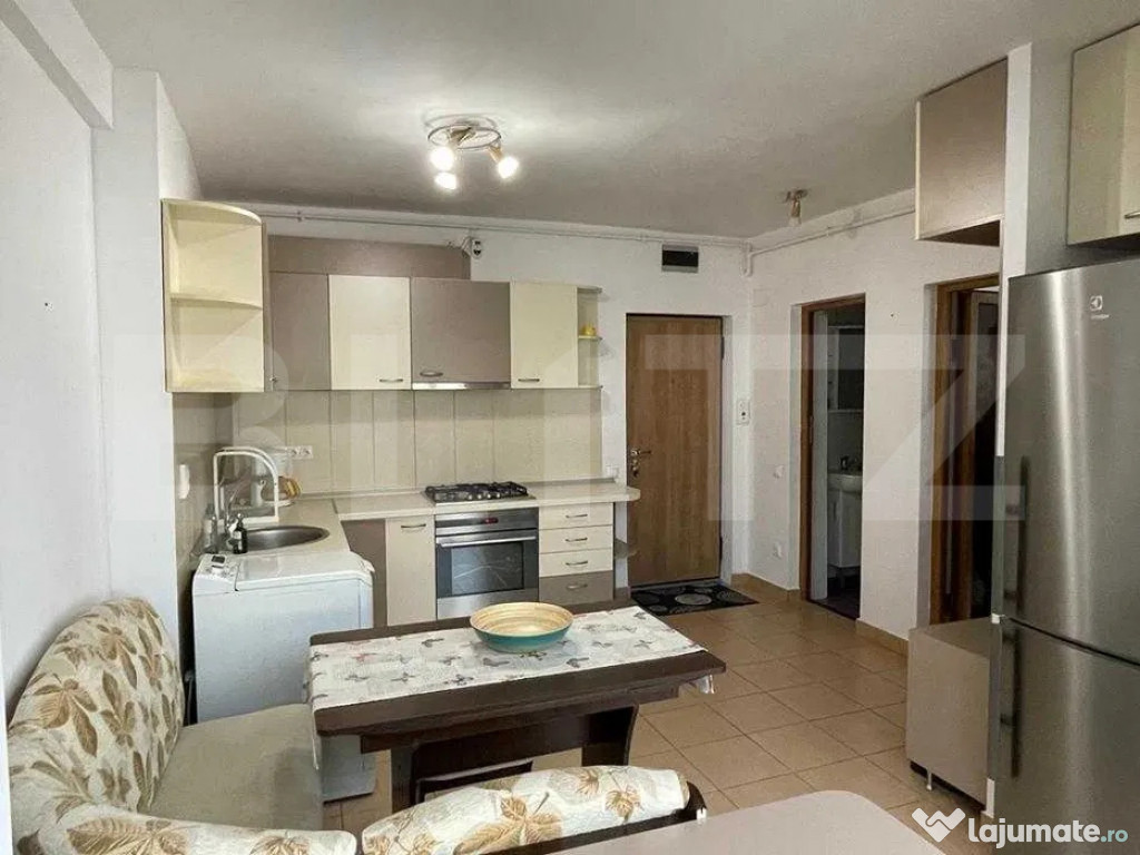 – Compartimentare semidecomandată, optim gândită: living generos și luminos, dormitor spațios cu dulap tip dressing, bucătărie complet utilată și baie modernă