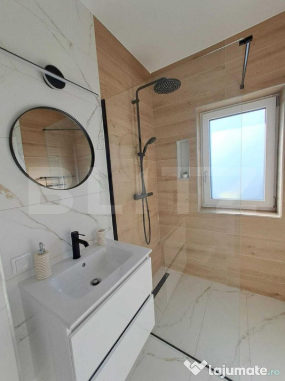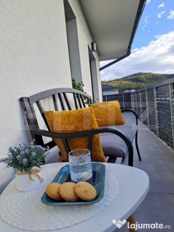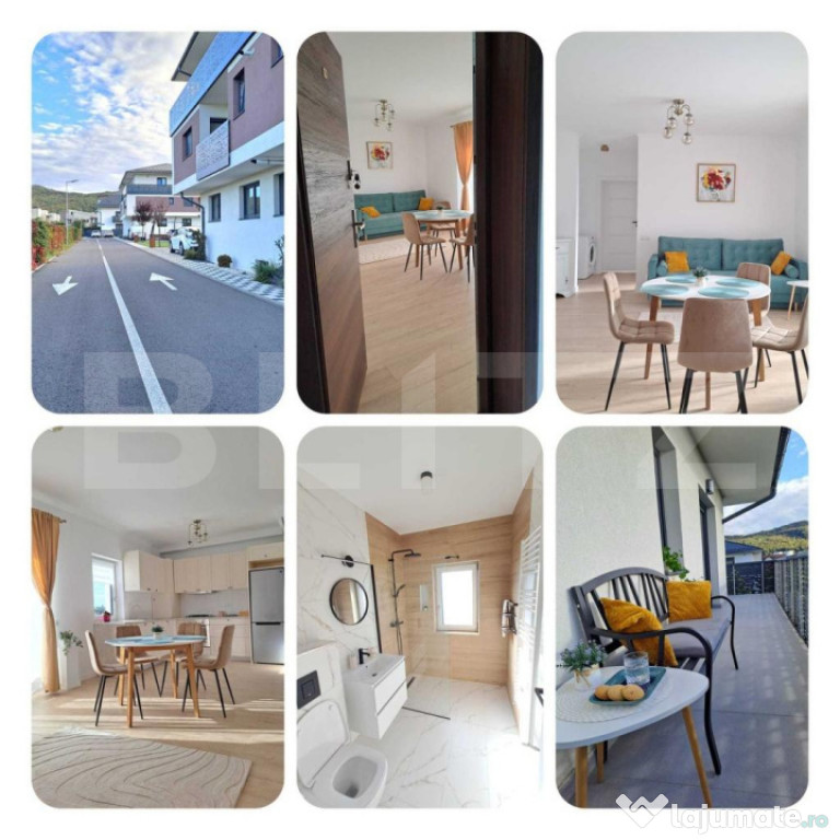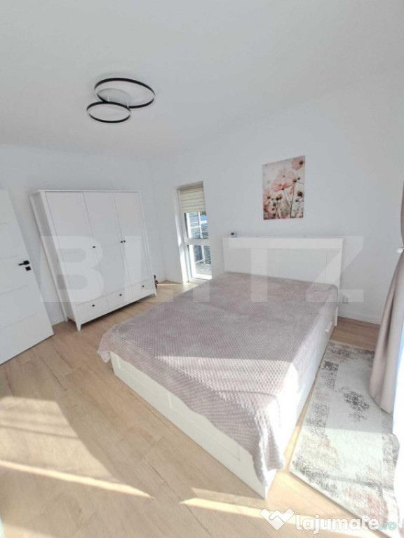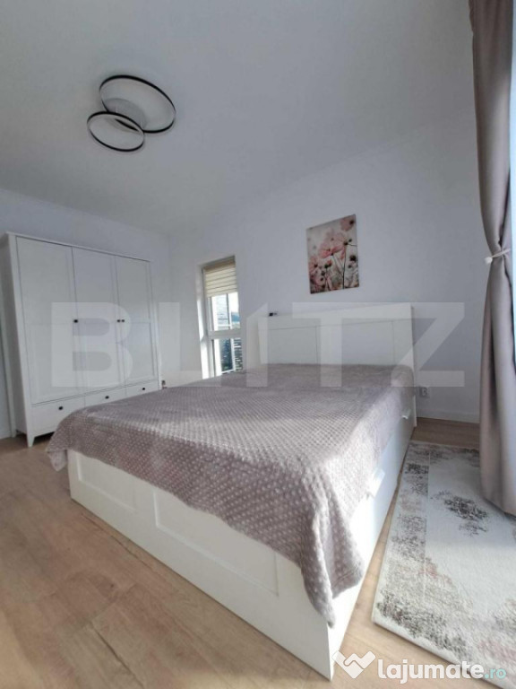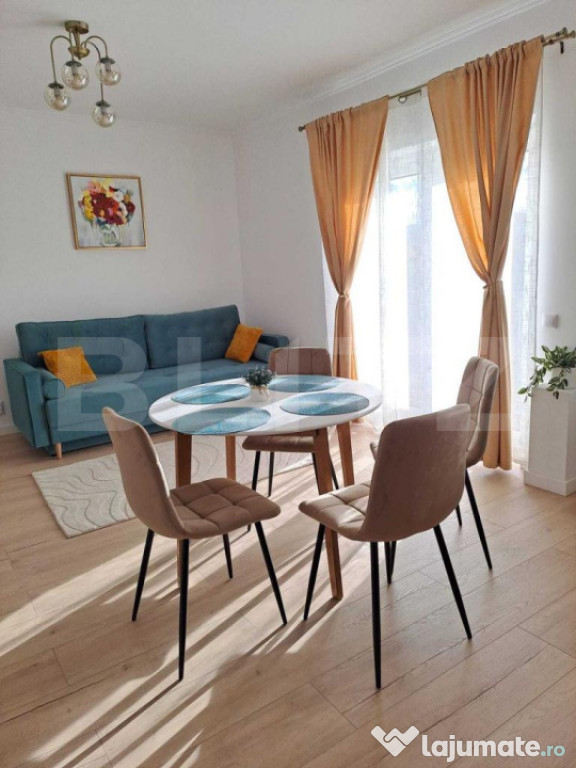 Blitz ofera spre inchiriere un apartament primitor, amenajat cu bun gust, care îmbină perfect confortul urban cu liniștea unei zone rezidențiale aerisite. Locuința se remarcă printr-un design elegant, culori calde și finisaje moderne, oferind o atmosferă luminoasă și relaxantă. Livingul este spațios și primitor, cu o canapea confortabilă, zonă de dining și ferestre mari ce lasă lumina naturală să pătrundă generos în interior. Bucătăria open-space este complet utilată și integrată armonios în spațiul de zi, ideală pentru seri relaxante sau mese în familie. Dormitorul promite momente de liniște și odihnă deplină, având un design minimalist și plăcut. Baia modernă impresionează prin finisajele de calitate și cabina de duș elegantă. Terasa este locul perfect pentru cafeaua de dimineață sau momentele de relaxare în aer liber, cu vedere spre o zonă liniștită și verde. Va asteptam la vizionare!Cod ofertă / ID BLITZ: P156779