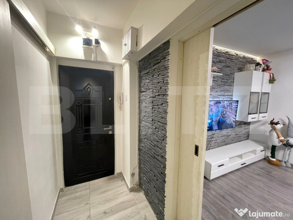 Locuința a fost renovată modern și se vinde complet mobilată și utilată, fiind gata de mutare, fără a necesita alte investiții. Este dotată cu aer condiționat, încălzire prin termoficare, si balcon izolat,printre dotari se mai gasesc si doua televizoare Smart LG și mașină de spălat și uscat rufe Samsung. In proximitatea acesteia gasim Facultatea de Drept, Facultatea de Mecanica,Gradinita Pinochio si un acces facil datorita pozitionari la toate punctele de interes ale orasului Craiova, fiind ideala pentru o familie cu copii,