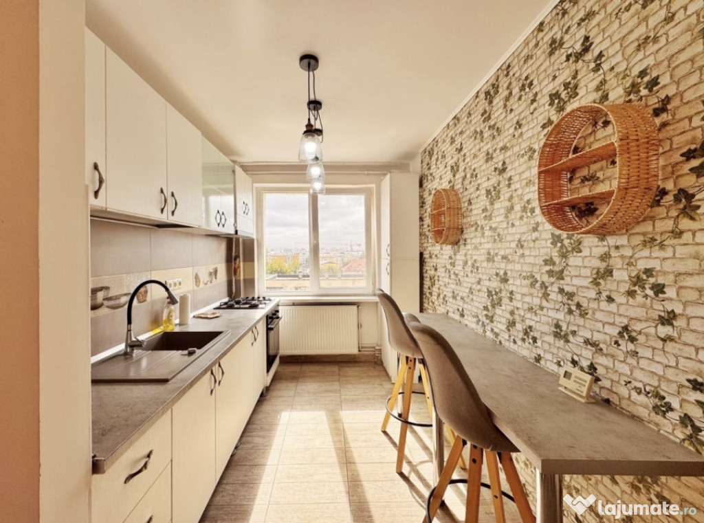 Blitz va ofera spre închiriere un apartament deosebit cu 2 camere, extrem de spațios (65 mp), complet renovat, mobilat și utilat cu atenție la detalii, situat pe strada Coșbuc, la etajul 6 al unui imobil bine întreținut.Apartamentul beneficiază de dublă orientare, oferind lumină naturală pe tot parcursul zilei și o priveliște superbă asupra orașului.